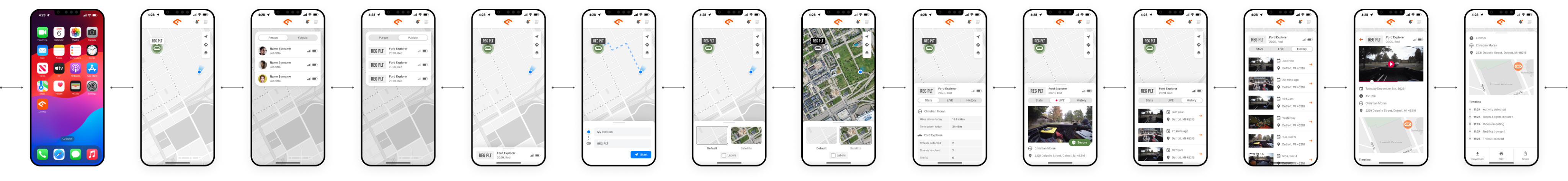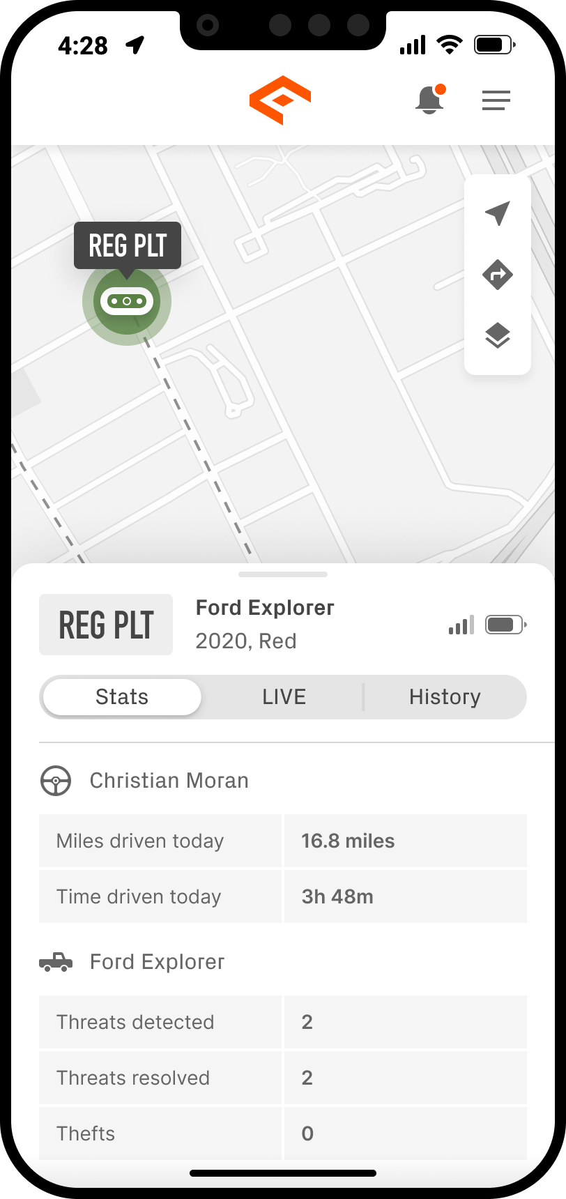 The software also allows for account creation, the ability to add, edit or delete people, locations, and vehicles, as well as old notifications and vehicle or driver statistics. The App also has a map that shows the user where their vehicle is, with the ability to locate more than one vehicle or person, and get directions to them.