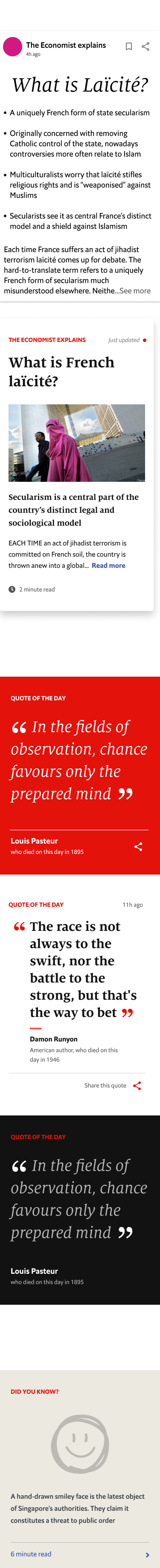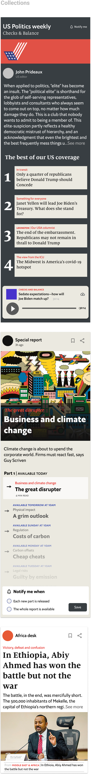 The Economist section gives you a preview of the full-fat Economist offering, where consumers can get a taster