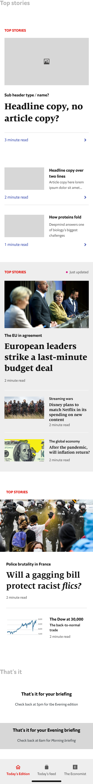 Today’s feed follows more of a casual approach to consuming news. New stories are added as and when they break, in date order, and the consumer can read as much or as little information as they like.
