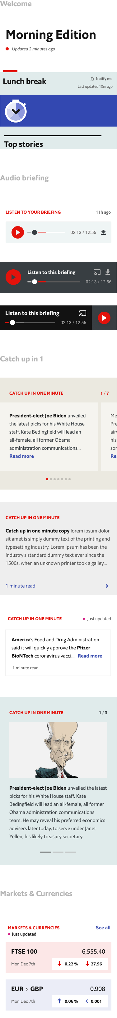 I was hired in the early stages of this project to design reusable components, that could be added to a design system, and an engineering kit of parts that could accommodate every type of news story.