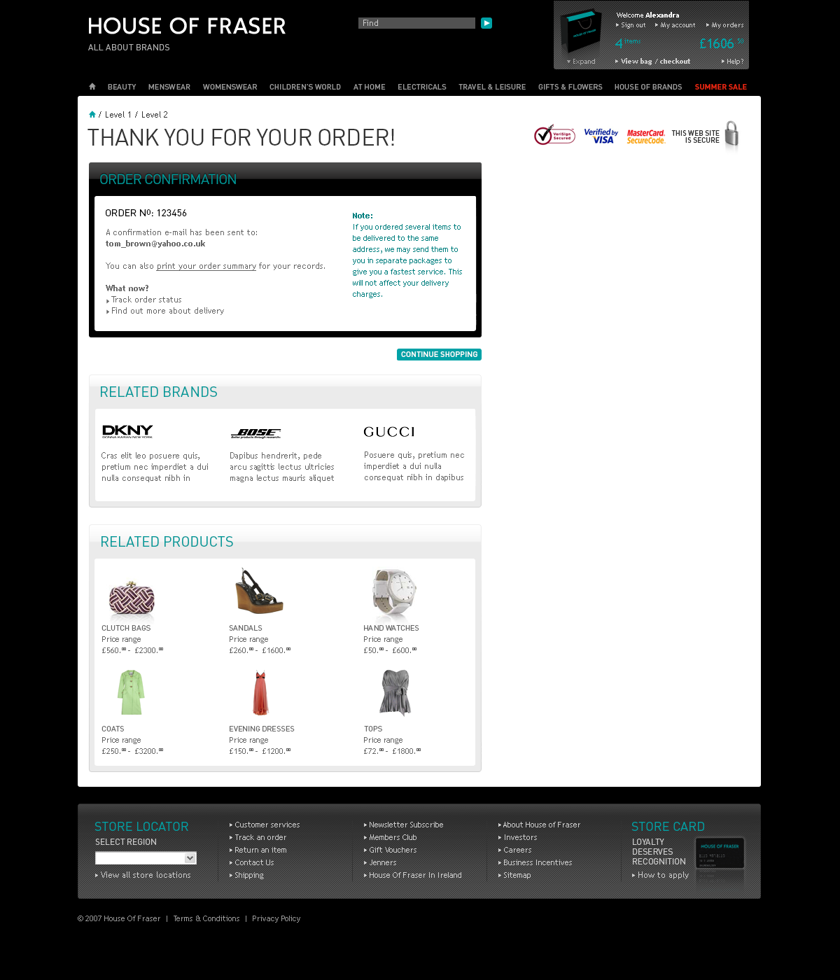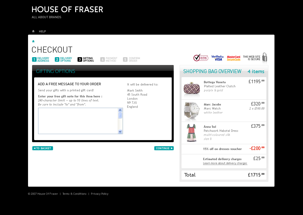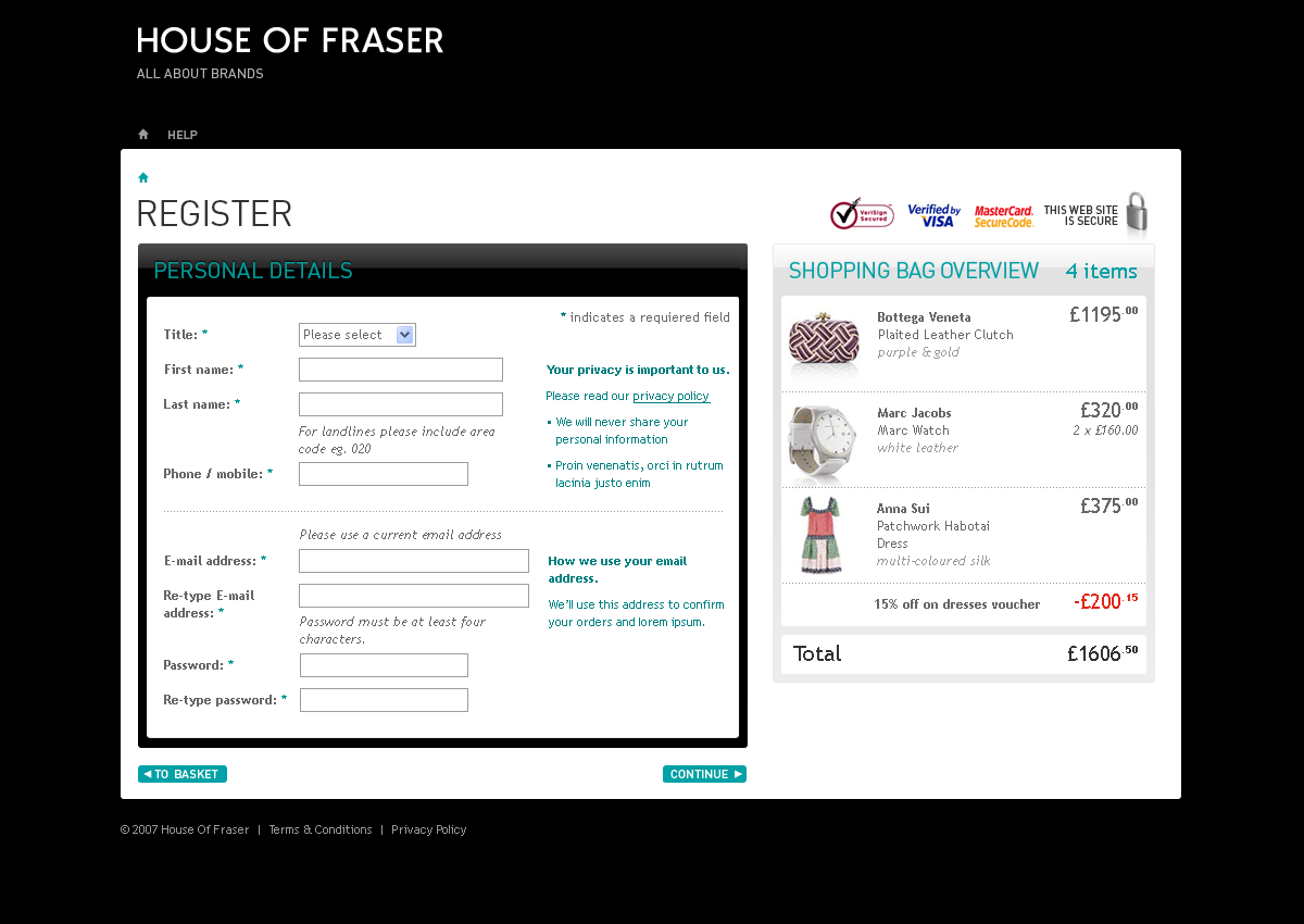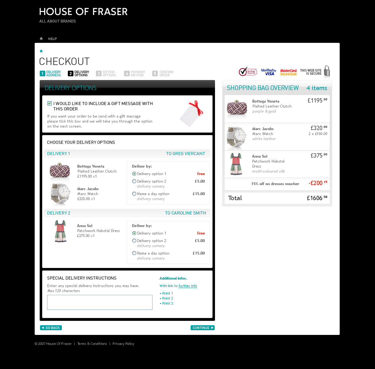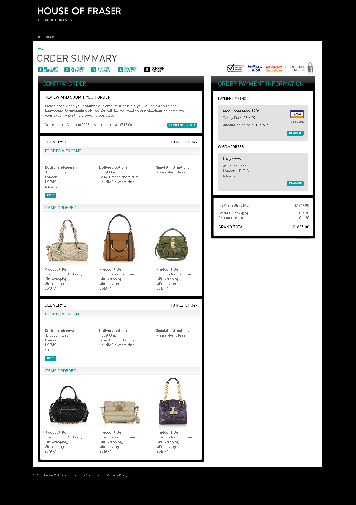 I was the Senior Designer on the House of Fraser project while working at DigitasLBi. We did a lot of work around the checkout section of the website, trying to ensure that we had done everything we could to minimise the user dropout rate.
